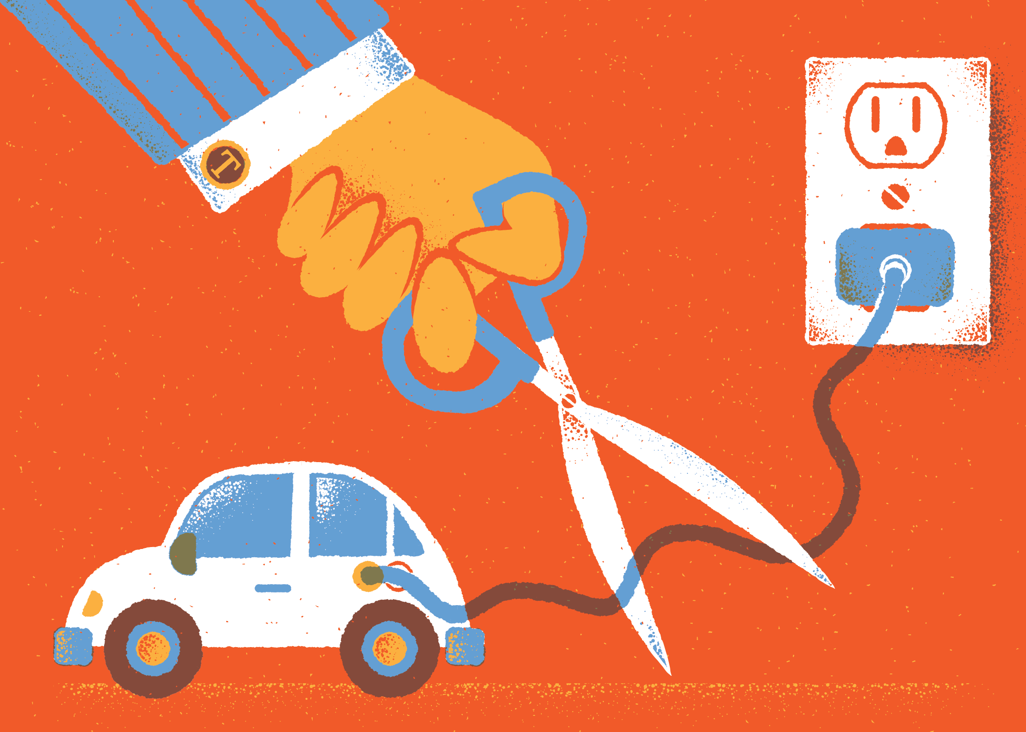 In January 2025 I got to do the cover and a full page illustrations for GRID Magazine’s “Electrify Everything” issue. I was asked to do a follow up to those pieces as many of the programs are being cut by the government. I decided to reference the original full page by reusing the palette, overlay effect and car shape from the original.